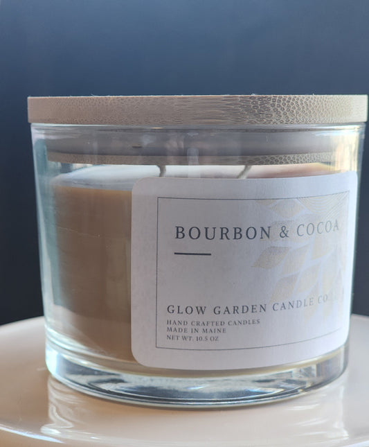 Bourbon Cocoa 10.5 oz candle with bamboo lid