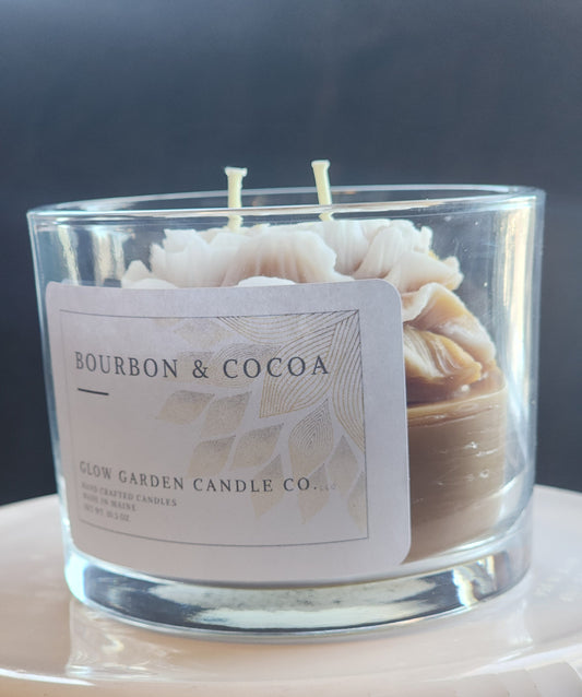 Bourbon Cocoa 10.5 oz candle with flower