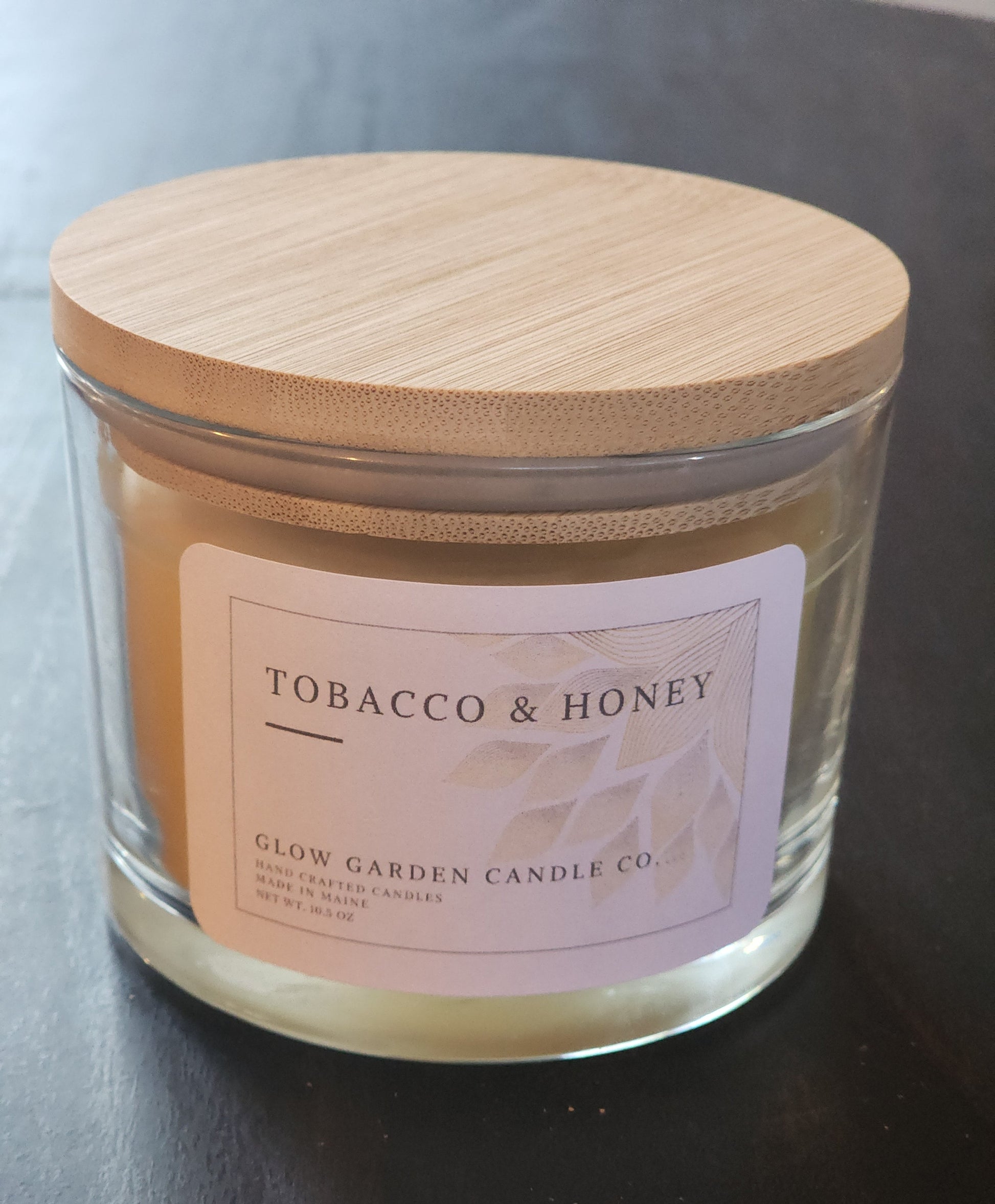 Tobacco & Honey 10.5 oz candle with bamboo lid